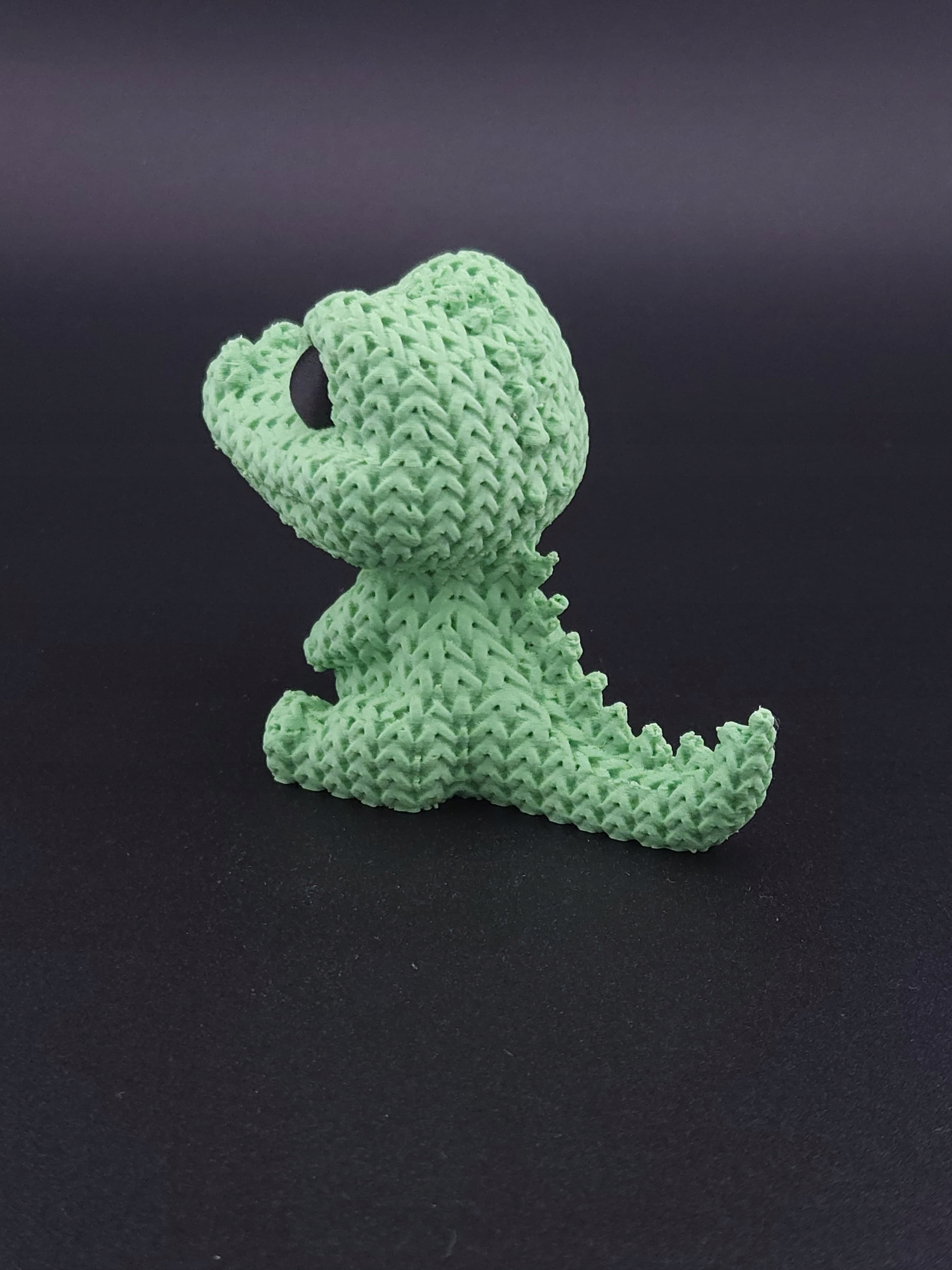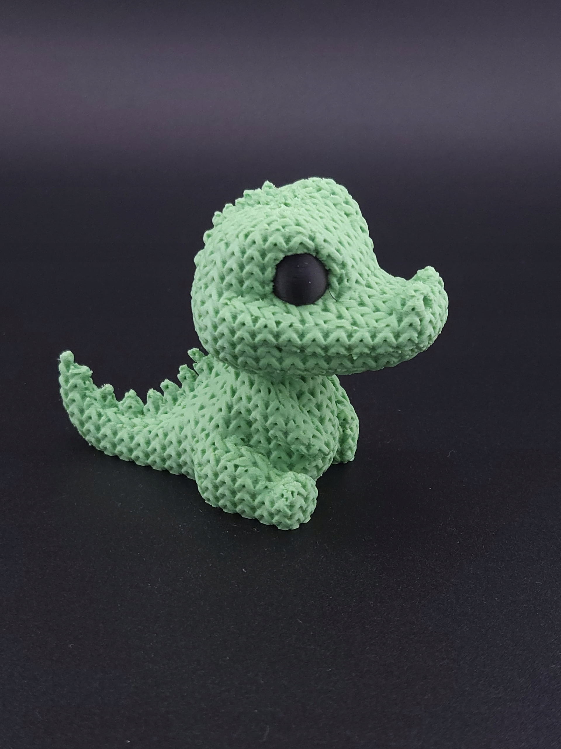 Około 6-centymetrowa figurka sympatycznego krokodyla, która wygląda jak starannie wydziergana z włóczki, choć powstała w profesjonalnej drukarce 3D. Jego przyjazne, duże oczy i lekko zawadiacki pysk sprawiają, że od razu zyskuje fanów - i to bez groźnych zębów!